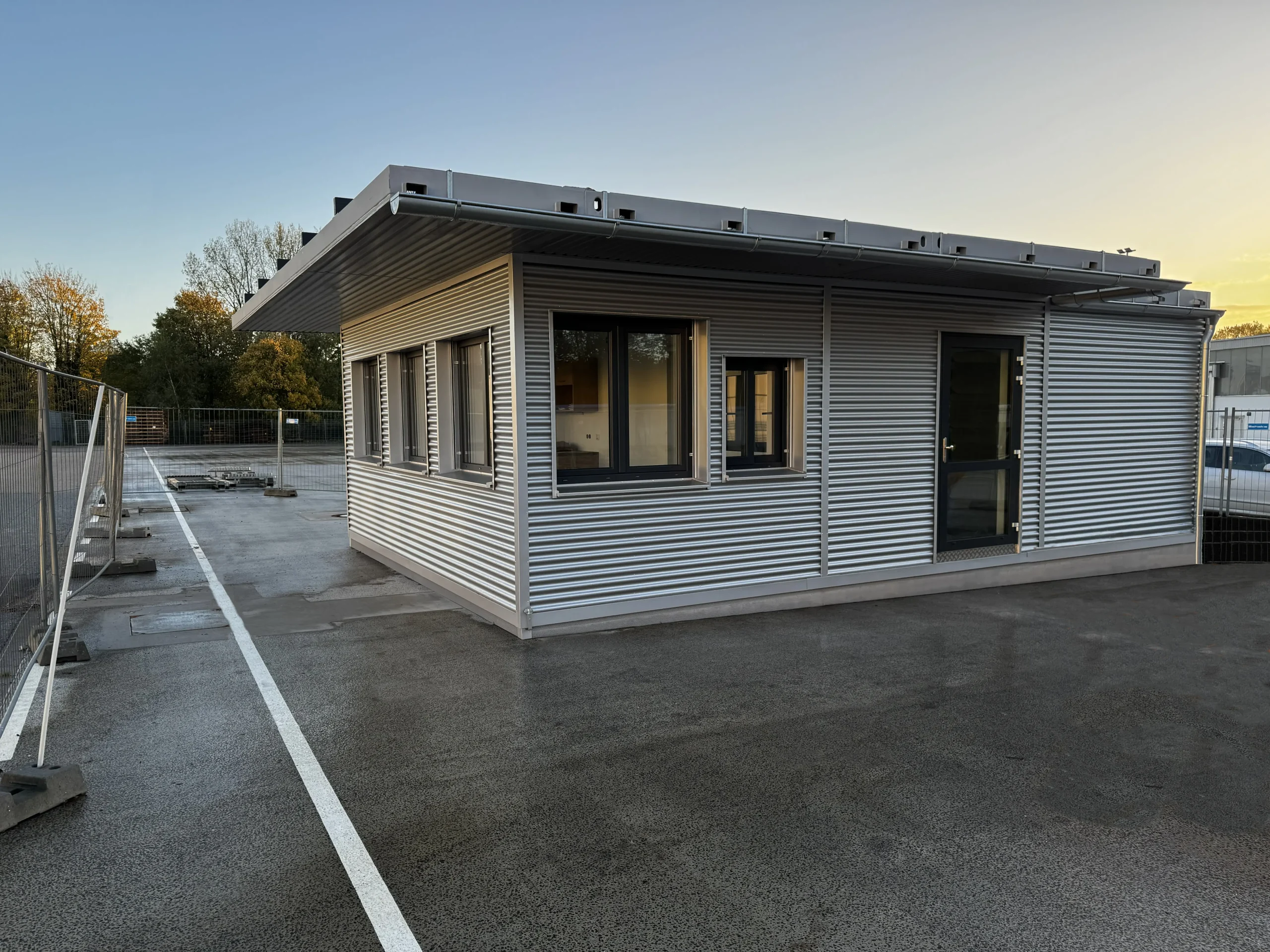 Dank der seriellen Fertigung und des eingespielten Montageteams konnte das Gebäude innerhalb kürzester Zeit errichtet werden – ein entscheidender Vorteil der modularen Bauweise für Unternehmen, die schnell und flexibel zusätzlichen Raum benötigen.