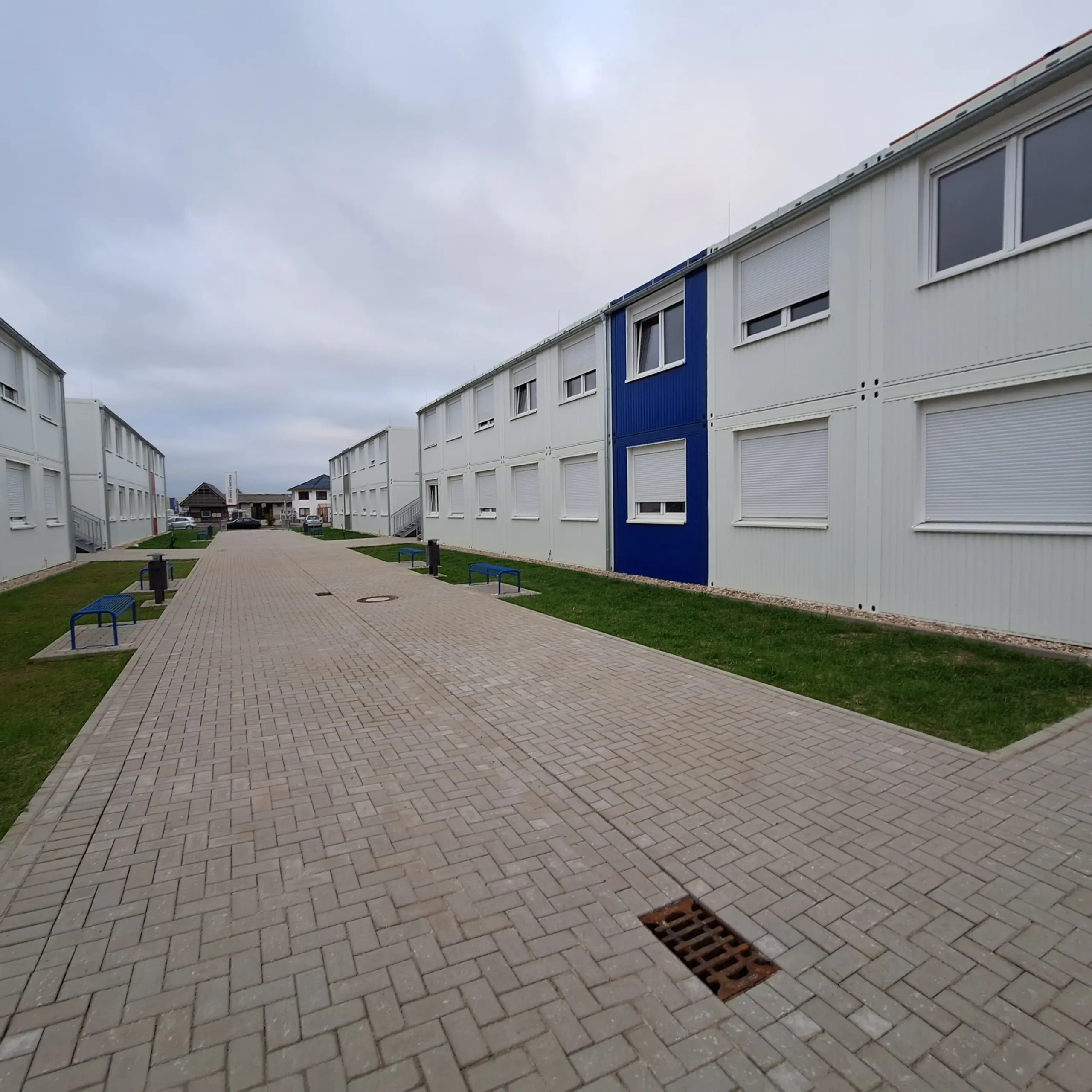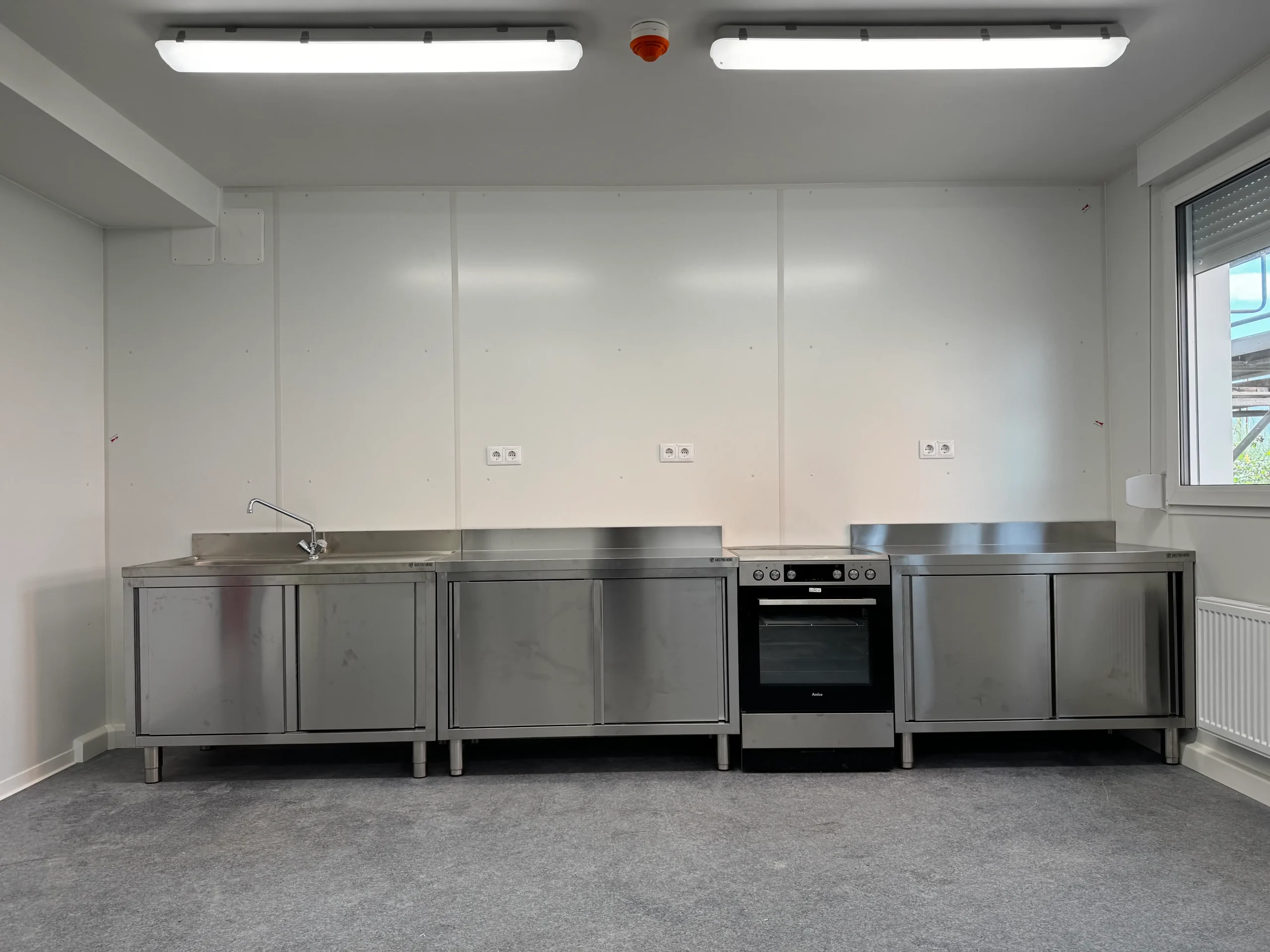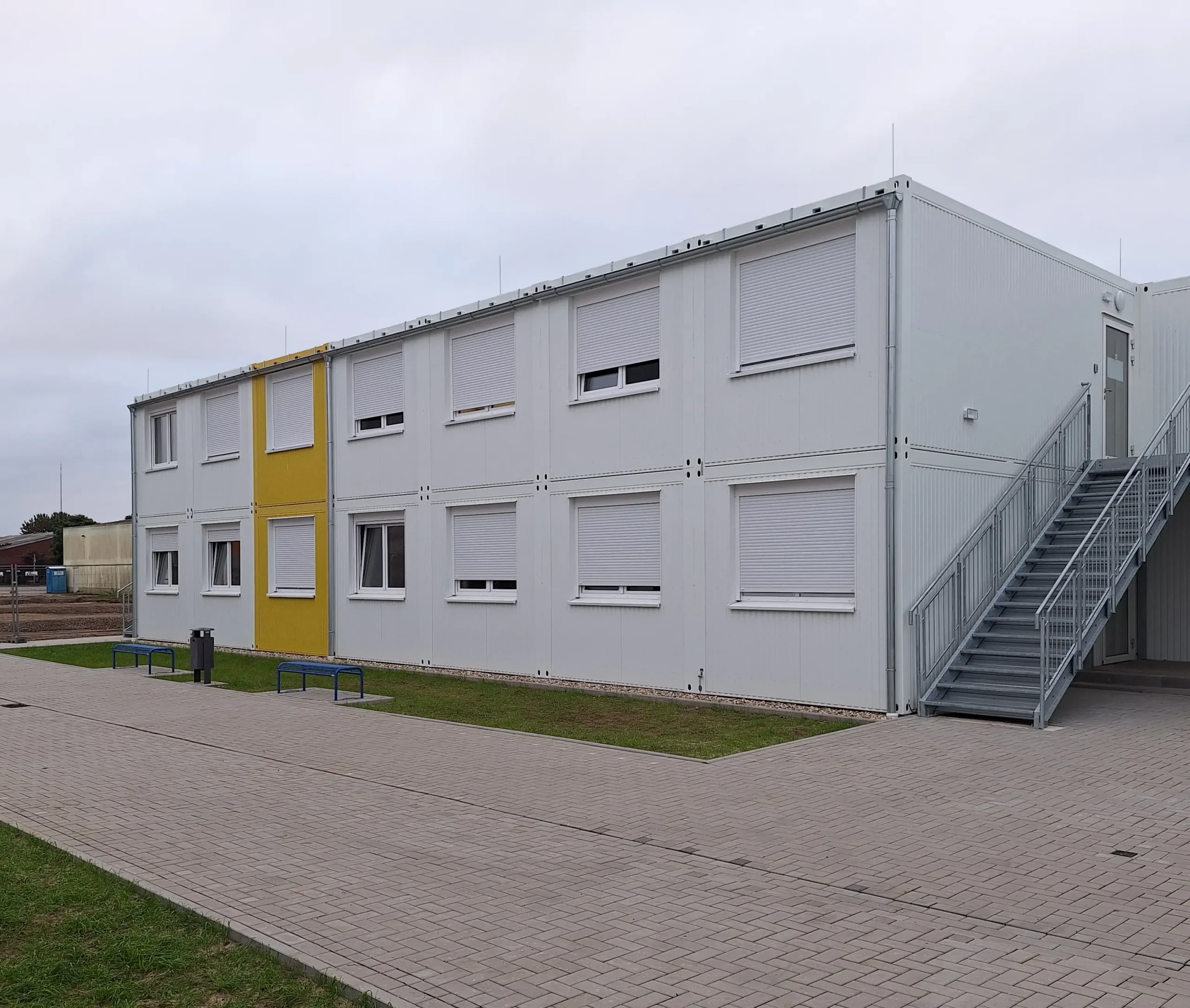 Die Unterkünfte verfügen über funktional gestaltete Zimmer, moderne Sanitärbereiche, großzügige Küchen- und Aufenthaltsräume sowie Wasch- und Technikräume. Durch die klare Struktur der Flure und Wohneinheiten entsteht ein übersichtliches, sicheres und alltagstaugliches Wohnumfeld. Die modulare Bauweise ermöglicht zugleich eine effiziente Nutzung der Grundfläche und eine hohe Flexibilität bei zukünftigen Anpassungen.